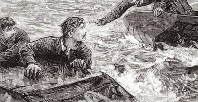 When Sawdy reached the stricken vessel he passed an oar to Hayes, who was on the point of sinking, and pulled him into his boat.