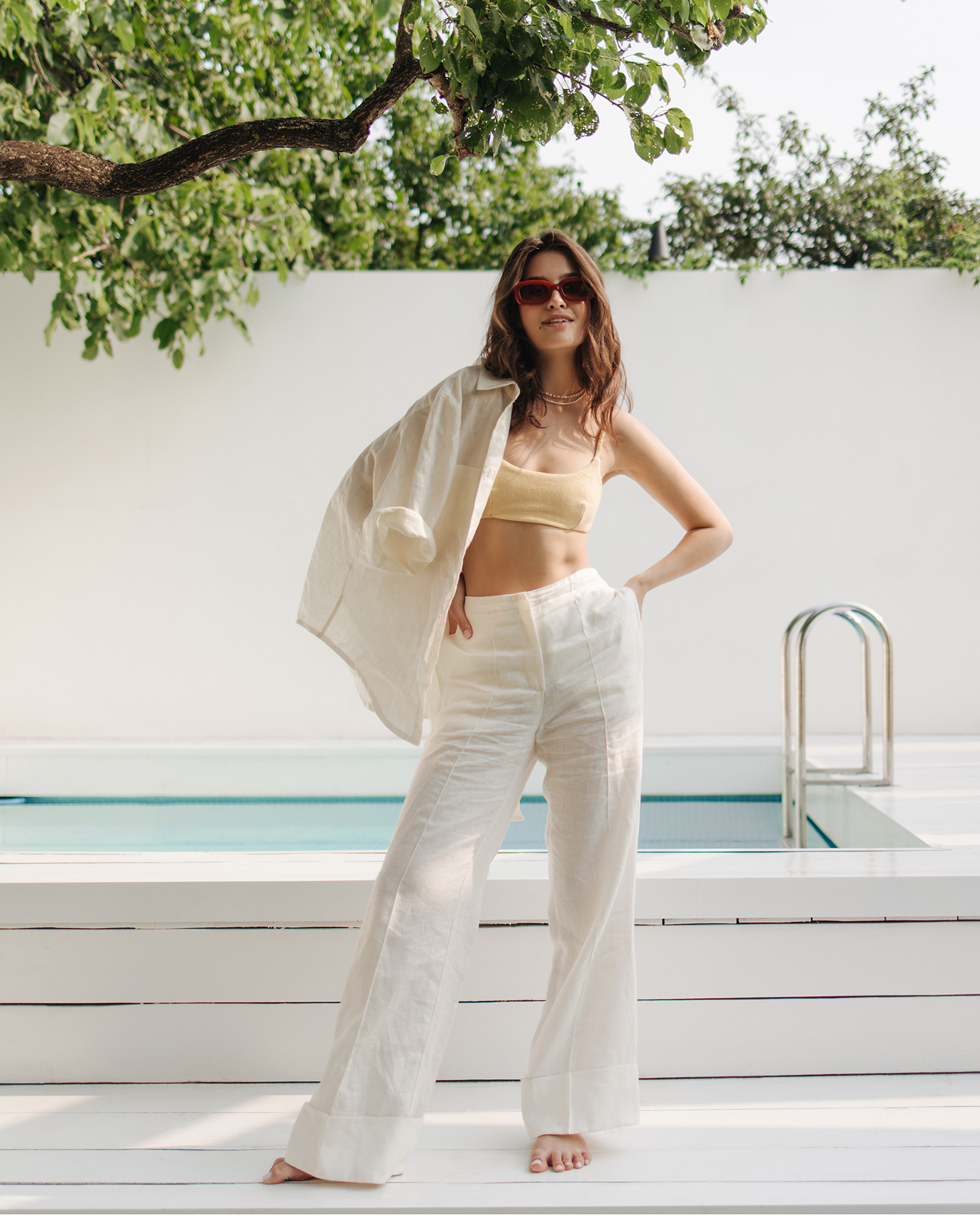 ‘Ultra-modern minimalism’ is what we are labelling this season’s looks. Good ol’ linen takes the forefront from dresses, culottes, and tops in clean simple silhouettes. Combinations of mixing man-made textiles such as viscose, lyocell and modal have breathed new life into the ever- faithful linen taking that crisp crushing factor away and making it far more ideal to invest in. Clever tailoring with this newly blended, fine-tuned fabric will create polished and effortless pieces to elevate with statement accessories.