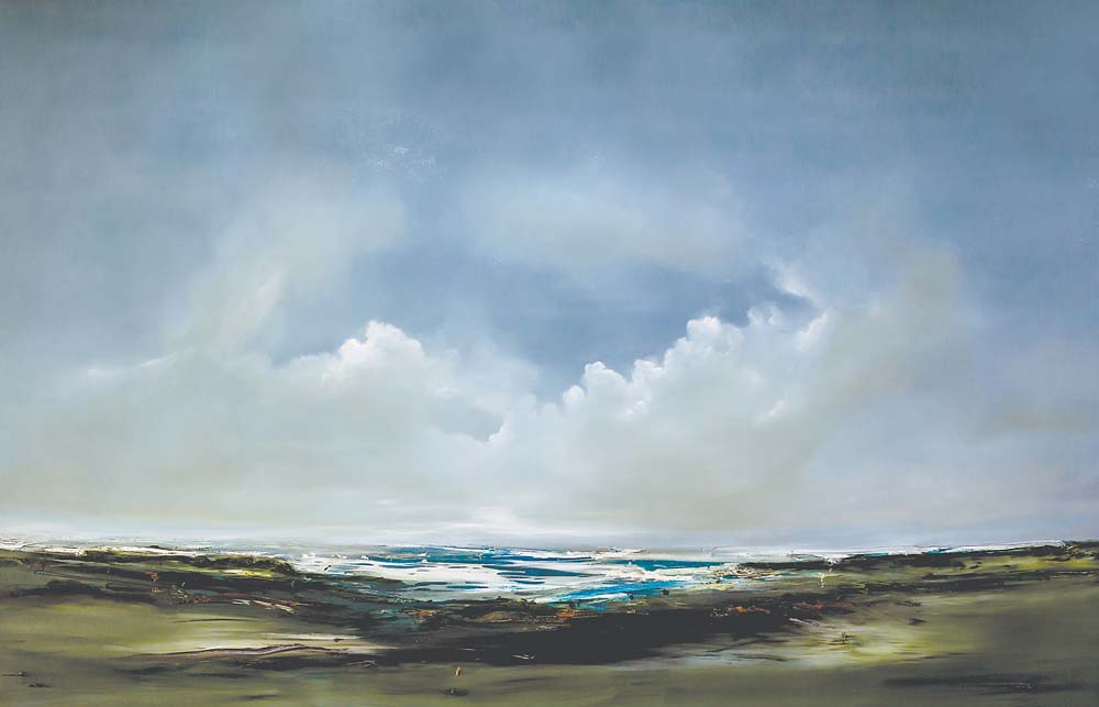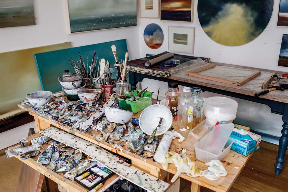 “Everything around is an inspiration, the sky, the beach, the mountains. I remember places I have been and how I felt when I was there and paint the feeling. There’s a lot of energy you pick up on and the challenge is to paint that experience,” says Miodrag, whose paintings have an ethereal quality, the light bursting off the canvas.