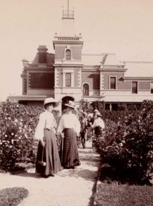 In 1865, when he was 24 years old, Frederick Grimwade married Tasmanian-born Jessie Taylor Sprunt at St Paul’s Church, Kyneton. The couple made their home in St Kilda until they built a fashionable new house, in the Italianate style, in Caulfield. They called it ‘Harleston’ after Grimwade’s place of birth. ‘Harleston’ sat on a seven-acre lot, part of which was farm land. The couple became parents to nine children although two, a son and a daughter, died in infancy. Their eldest child, a son, Norton, was born in 1866; their last born, Freda, arrived in 1884. Three sons, Norton, Harold and Russell qualified as pharmacists, all working in the family company; the other son, Sheppard, became a doctor. Freda had two older sisters, Elizabeth and Alice, and the three girls were brought up to take an active interest in charitable work.