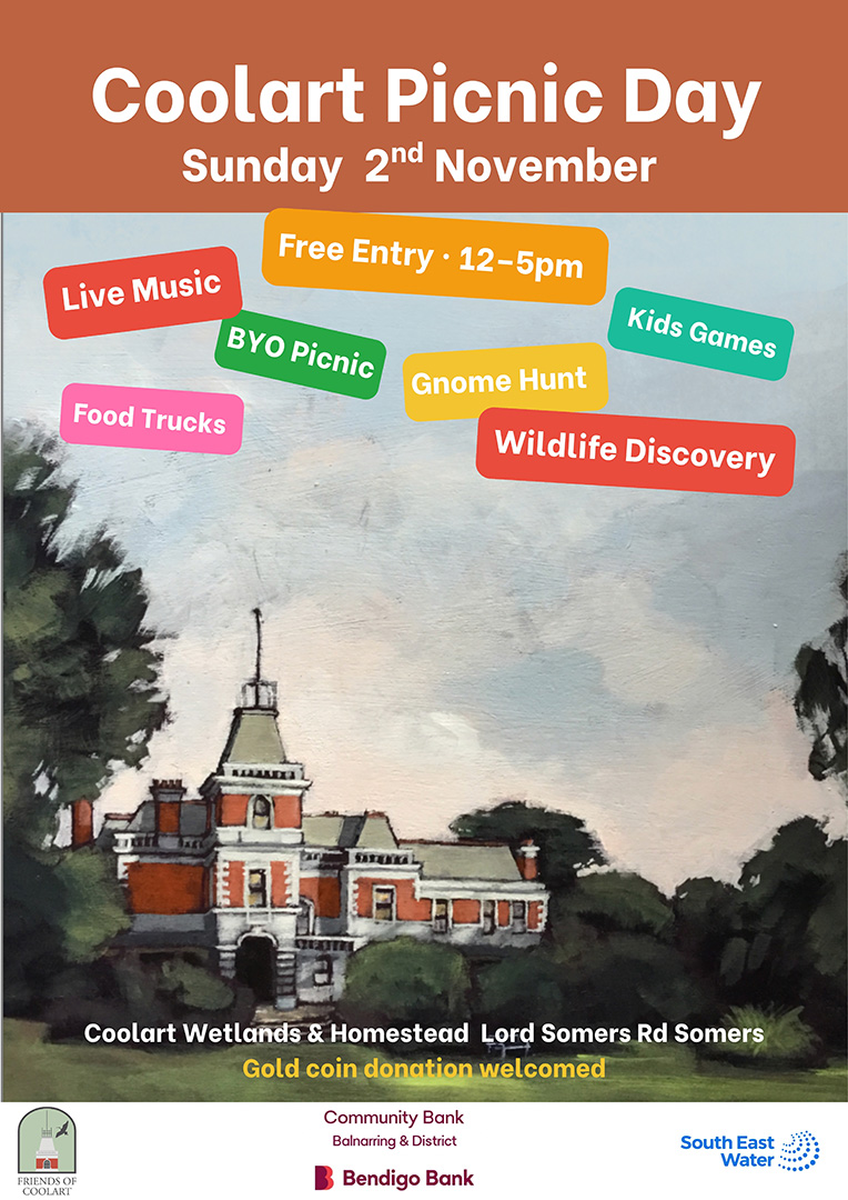 Coolart Picnic Day — returning on Sunday 2 November from 12 to 5 pm at Coolart Wetlands & Homestead, Somers.