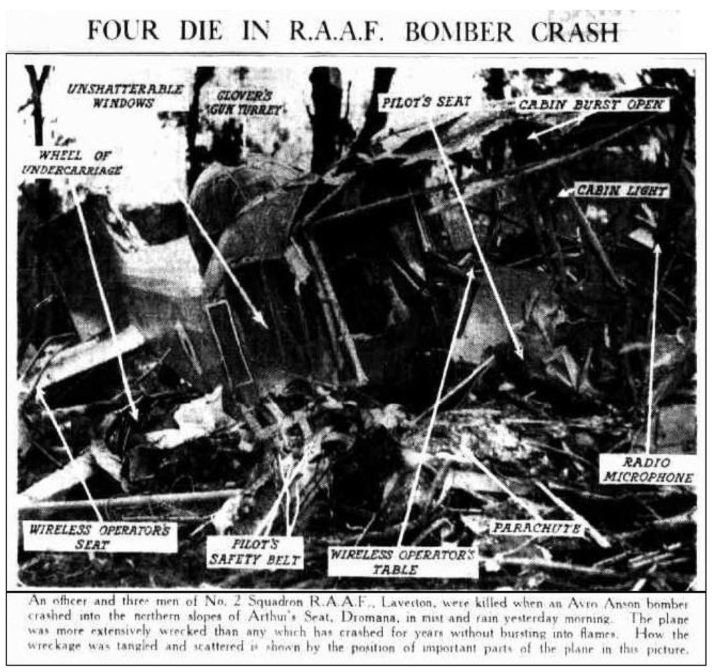 Mid-morning the air force was given the tragic news that A4-29 had crashed into the northwestern face of Arthurs Seat. Four men had been killed and one had miraculously survived.