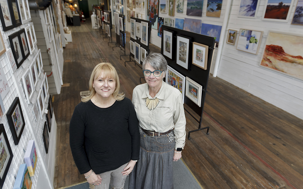 Nicole and Wendy Hall at the Art House Gallery amongst works from various peninsula artists