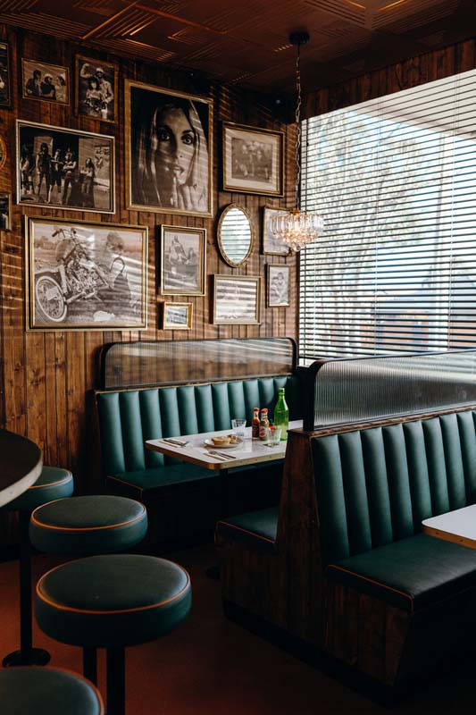 Loosie’s is American inspired and largely influenced by the ‘dingy’ diners found throughout Los Angeles during the 1970s. Loosie’s diverges from the full dive bar style of Wowee Zowee, to offer more food options and create an inclusive environment, whilst still honouring the idea of getting loose. Hence naming the bar after the most popular cocktail at Wowee Zowee, ‘Loosie Goosie.’
