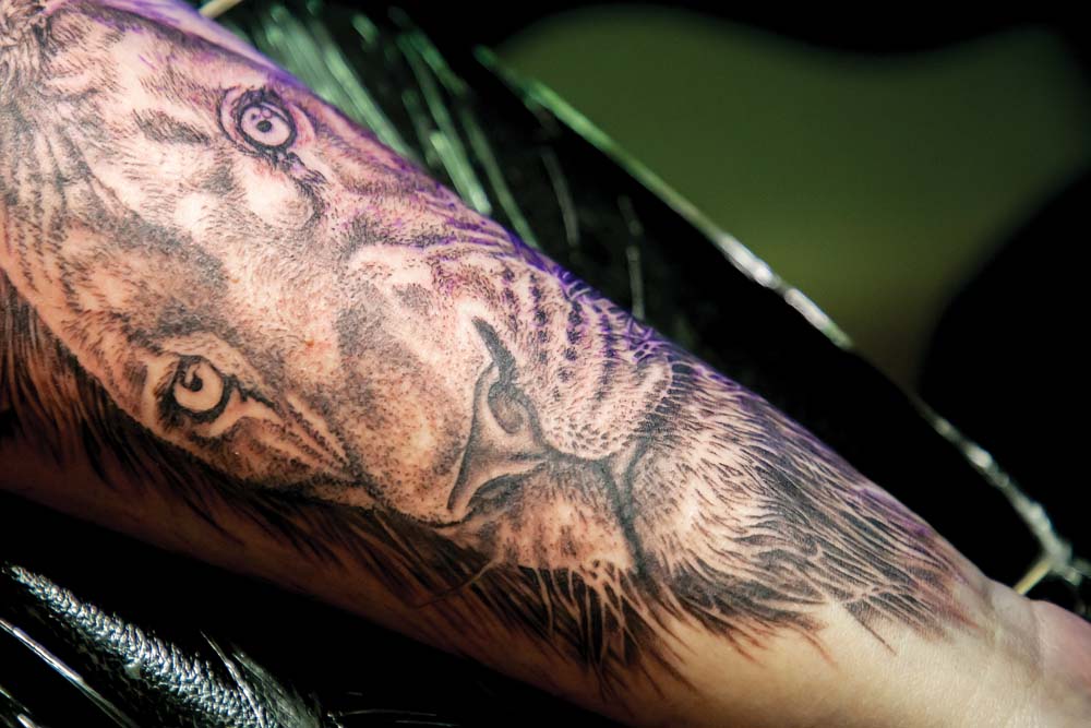 Tattooing can be a very time consuming process, but most tattoos can be completed in a number of hours. “The longest single sitting I did was about 11 hours at a convention where there was only a limited time to get a large piece done. In some of these conventions, that’s 11 hours straight! Other times we’ve done three days on the same tattoo,” he says. Patience is clearly one of Boyle’s virtues.
